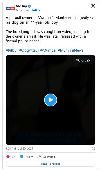 The tragic and tragic incident of humanity occurred in Mumbai, where a man left the American -born bloody Pitt Bill dog on a young baby and laughed as a spectator.